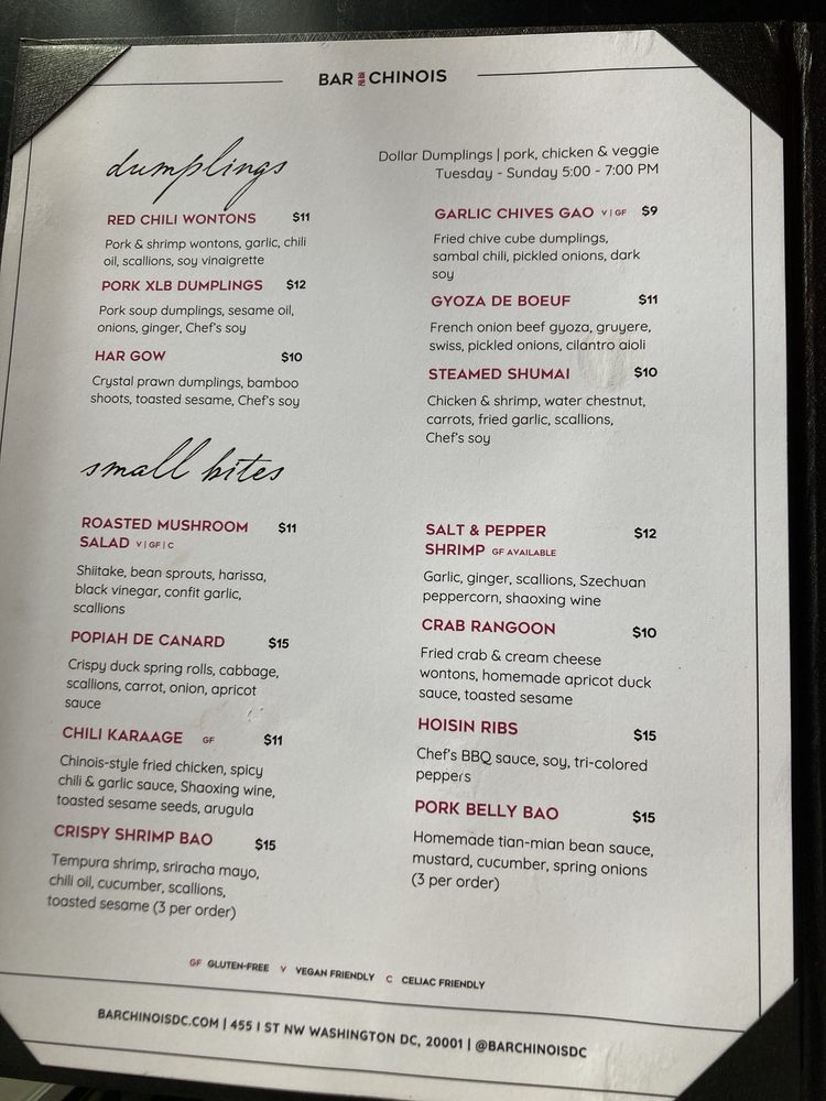 Introducing Bar Chinois, a restaurant with a unique fusion of Chinese and French cuisine located at 455 I St NW in Washington, DC. Known for its welcoming atmosphere and impeccable service, Bar Chinois offers a range of amenities including happy hour specials, outdoor seating, and gender-neutral restrooms. The menu features delectable dishes like $1 dumplings during happy hour, as praised by reviewers for their flavor and quick service. Customers also rave about the refreshing cocktails like the Riviera Highball and Peak Bloom. With a cozy and Instagram-worthy ambiance, Bar Chinois is a must-visit spot for a delightful dining experience.
